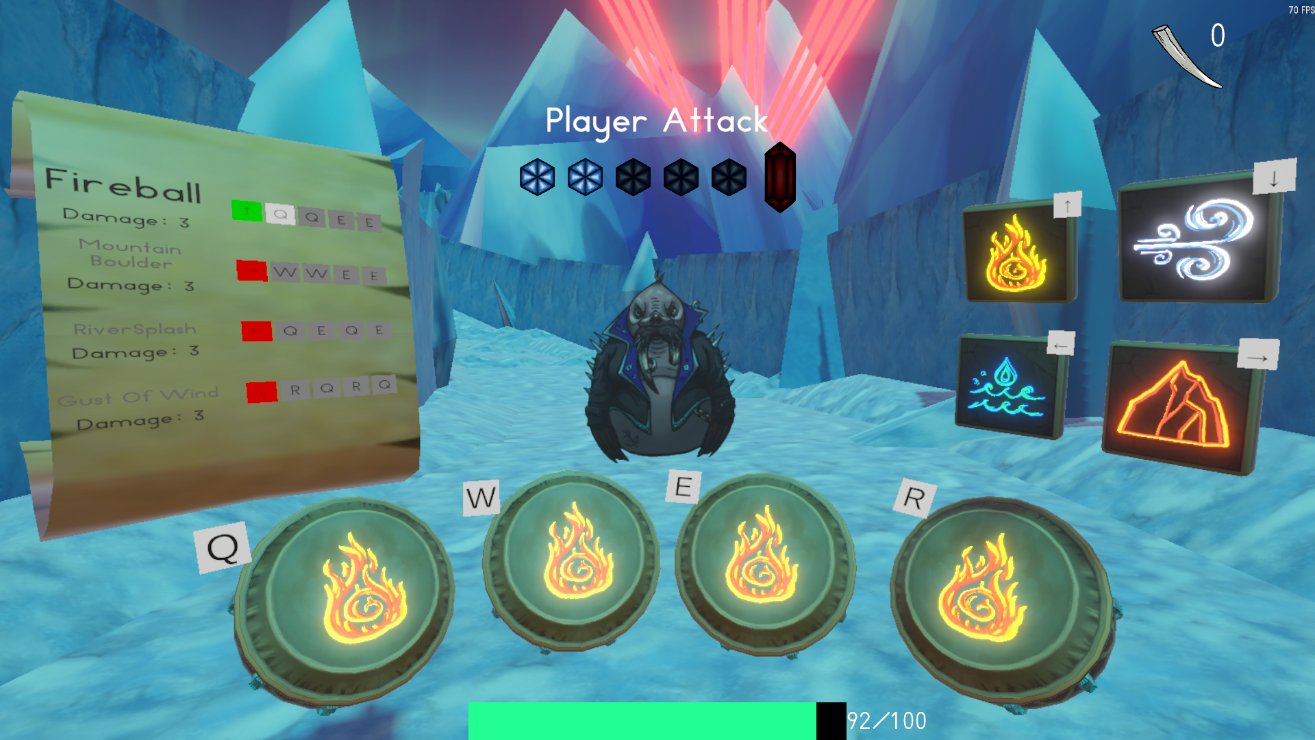 Spellbook: Study your spellbook on the left and choose which spell you want to cast next.
